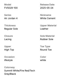 Air Jordan 4 Retro ‘White Cement’ 2025 FV5029-100